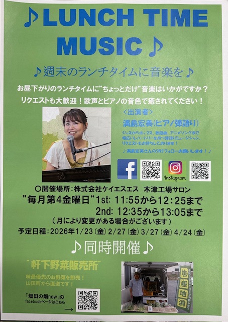 「LUNCH TIME MUSIC」&地元野菜即売会のお知らせ(2026年1月~4月)